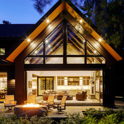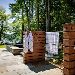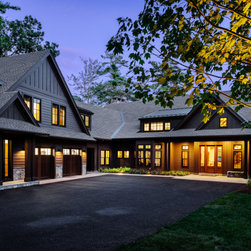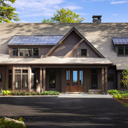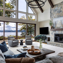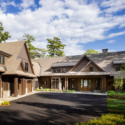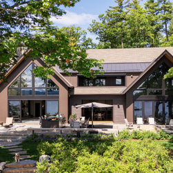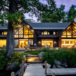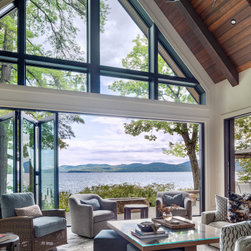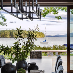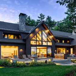 Nestled along the serene shores of Lake Winnipesaukee, this extraordinary 11,000-square-foot family home is designed to accommodate over 20 family members during the warm Lakes Region months. With unparalleled views of the Broads, the residence captures the essence of lakeside living, offering a haven of luxury and comfort. Surrounded by lush greenery, the client sought seamless integration with the landscape, leading to the exterior featuring a dark cladding that harmonizes with the surroundings and expansive openings that mirror the natural beauty of the area.
