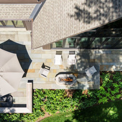 A spacious open-concept design connects the living, dining, kitchen areas, and four-season room, promoting an effortless flow for family gatherings and entertaining. The large windows and doors strategically placed throughout the home allow natural light to flood the space, further accentuating the breathtaking lake views. The residence features an array of amenities, including a guest two-bedroom guest wing, office, large pantry, sauna, and elevator. On the lakeside, a sprawling patio is a memoir of the original family home’s footprint and stands as a testament to the homeowners' dedication to carrying forward the longstanding family tradition of lakefront living.