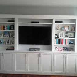 After reviewing with client what will be storage or display in this custom made media center; Lisa has created a sketch review by client and selected all material for completion after approval at presentation.