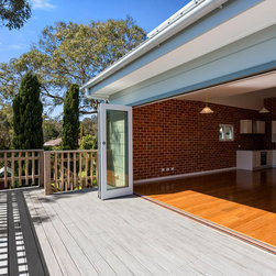 The design was challenging as the council has a vegetation overlay, and the block is very steep. We design the lower storey to be semi-earthbermed, and carved out a north facing thermally massive family den in that space. Whilst the sloping site does produce difficulty in overlooking issues, the block slopes down to the sea and the solar access on the north, and we created an entertaining deck that allows sunlight access to the living areas as well as allowing unimpeded coastal views. The result is two level of idyllic coastal living, where multiple generations can enjoy.