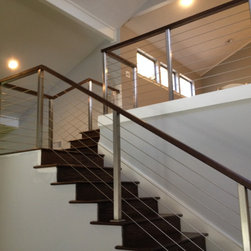 Our cable railing is fully welded frame, with thick materials. Each stainless steel cable is tensioned up to 300 Lbs. to reject 4” esphere. Comply with residential code and safety is our priority.