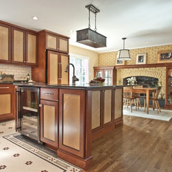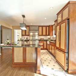 Project Features: Custom Zinc Sweep-Front Hood; Custom Tile Floor; Custom Door Finish; Work Island with Seating; Custom Fireplace Surround with Honed Black Slate and Seedy Spectrum Glass Doors; Jeldwen Pre-Hung Cherry Interior "Harvest" Glass Door