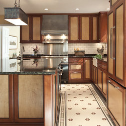 Project Features: Custom Zinc Sweep-Front Hood; Custom Tile Floor; Custom Door Finish; Work Island with Seating; Custom Fireplace Surround with Honed Black Slate and Seedy Spectrum Glass Doors