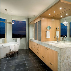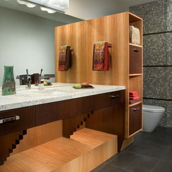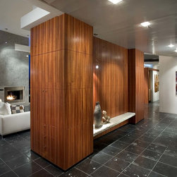 Combining crisp modern lines with the exotic beauty of Emberwood and block-mottled Anigre veneers, this residence redefines design by mingling contemporary construction techniques with mid-century modernist design influences.