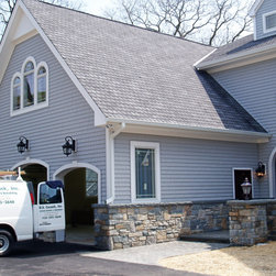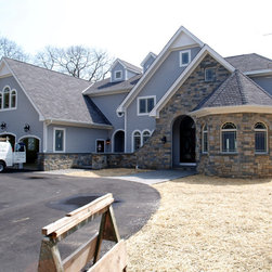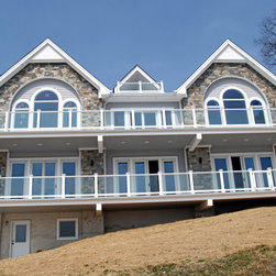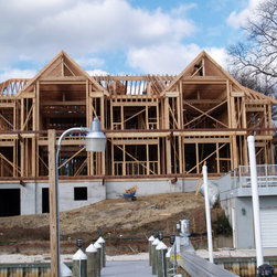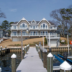 This home was custom build through and through. Built overlooking the Metedeconk River with wide panoramic views and a stunning exterior and structural design. (Theres even a tunnel built under that dirt pile leading to the waterfront)