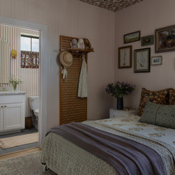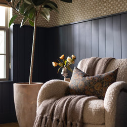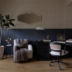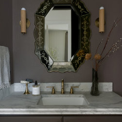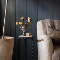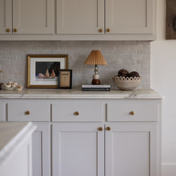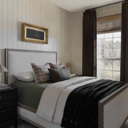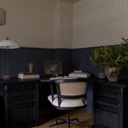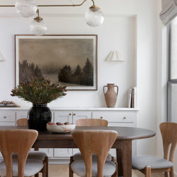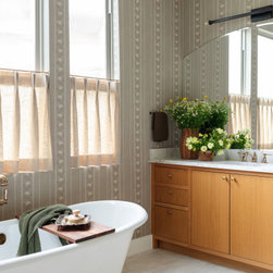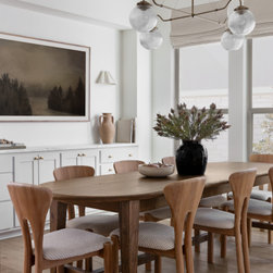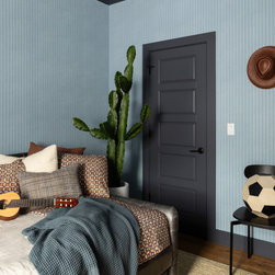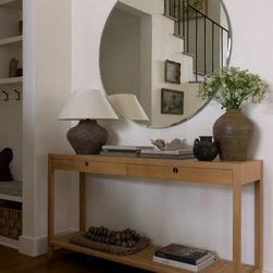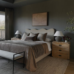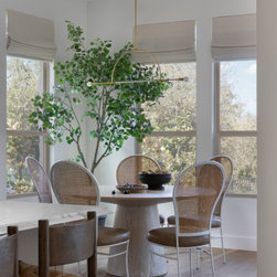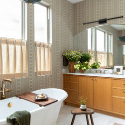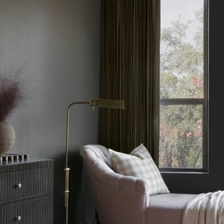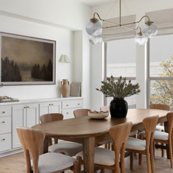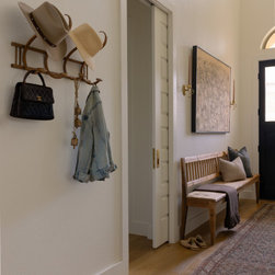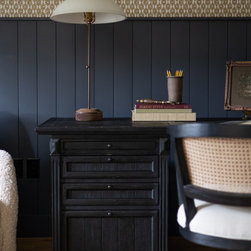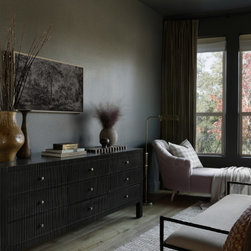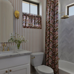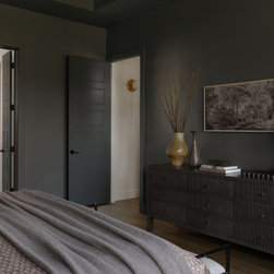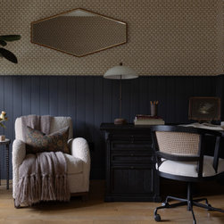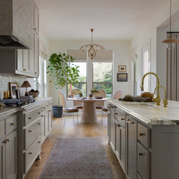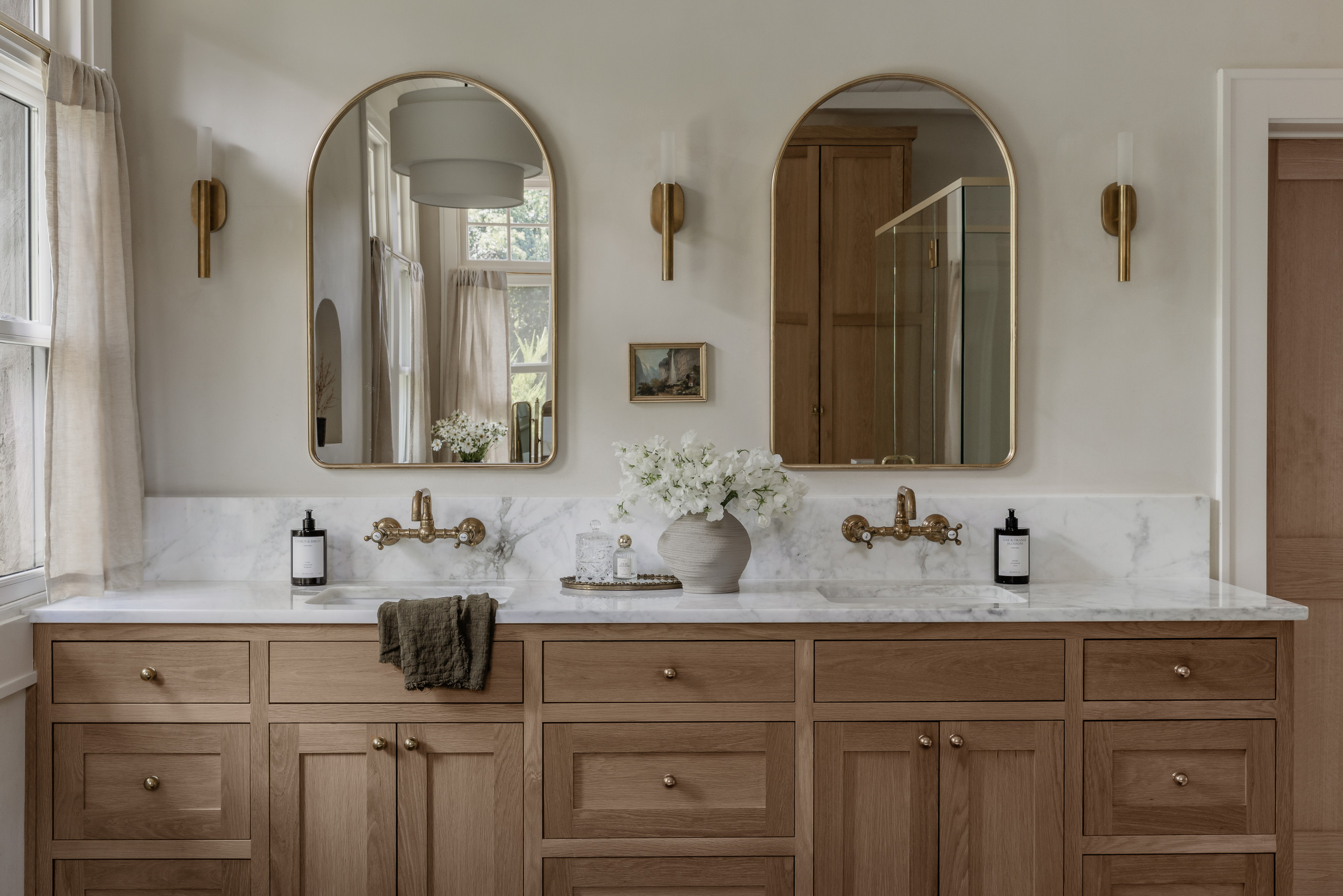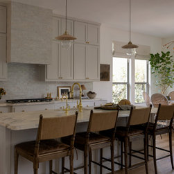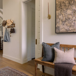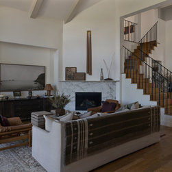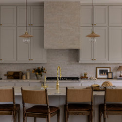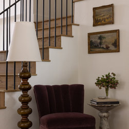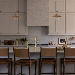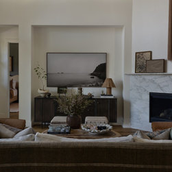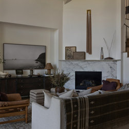 Audrey Scheck Design oversaw the full house remodel, design, and styling of a newly built home in Austin, TX with the goal of turning a spec home into one that is more reflective of personal style. To add cohesion throughout the two levels, ASD replaced flooring throughout the entire house and repainted the full interior. Wooden sills were removed from all windows throughout the house to modernize the space. The interior stairwell was fully renovated by replacing the handrail, newel, spindles, treads, nosing, and risers. The kitchen was also fully remodeled, including replacing appliances, countertops, backsplash, lighting, and plumbing fixtures. Three of the home's bathrooms were completely redone by replacing countertops, tile, lighting, and plumbing fixtures, and the primary bathroom was reconfigured to eliminate an undermount tub and enclose the shower. The project included several custom designed elements such as the marble fireplace surround, primary bathroom vanities, shower doors, kitchen vent hood, and counter depth paneled appliances. ASD also consulted on exterior landscaping and lighting.