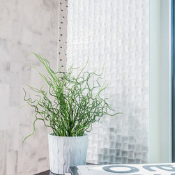 Photo features Anatolia, Milas White in the Neptuno Mosaic, Honed and Polished 11 x 11.