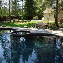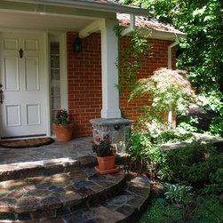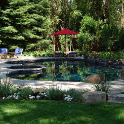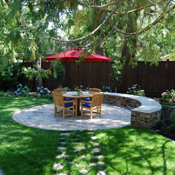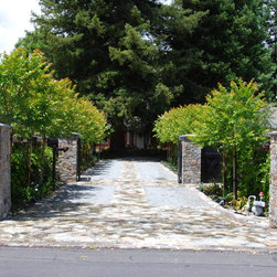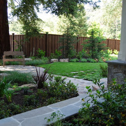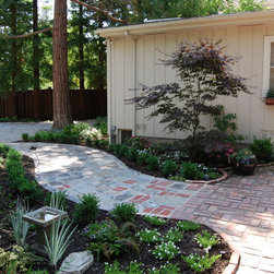 As you walk down a gated, tree-lined gravel driveway towards this turn-of-the-century bungalow, there she stands: "Old Gloria," as we named her during the planning of this pastoral project. A magnificent giant coast redwood, she stands front and center to this quaint, peaceful landscape. I designed this project to show off her beauty and maintain the historical characteristics of the site, including other mature trees, shrubs and old brick patios. Hardscape areas were redesigned to reflect the rustic quality of days gone by.