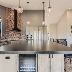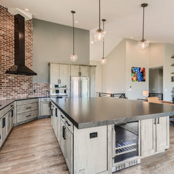 Beautiful open concept industrial style kitchen with a large island