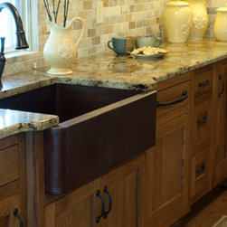 The open farmhouse sink is hand hammered from recycled copper by master artisans. Through years of skill and experience passed down from previous generations, the end result is a one-of-a-kind work of art. Made from 16 gauge copper, the open farmhouse has a warm antique finish and allows either for...
