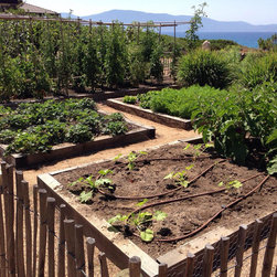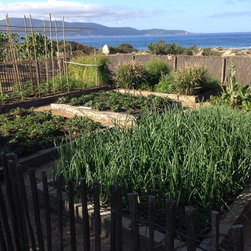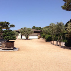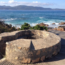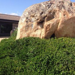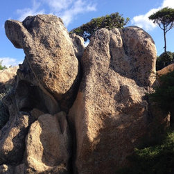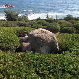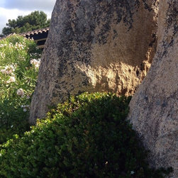 Spectacular red granite boulders through out the rough landscape, harsh winds, intense heat and sometimes, even snow, were all horticultural challenges and inspirations on this beautiful Mediterranean seaside property.
