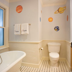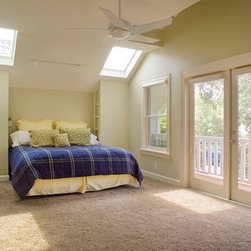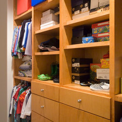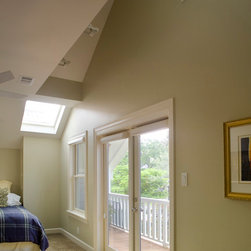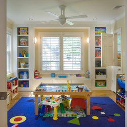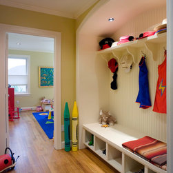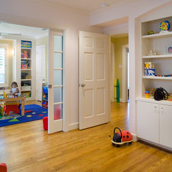 A family home is redesigned to be a welcoming space for the growing family. A number of cozy niches and alcoves create the opportunity for creative storage. An ample playroom is designed with plenty of cubby holes, shelves and a window seat to stimulate playful discovery. The closet is designed to accommodate the growing child while the Master bedroom takes advantage of its soaring ceilings to sweep light in through skylights with strategic vaulting.