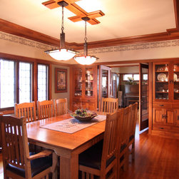 Craftsman style is a type of architectural and interior design style that originated in early 20th century America, emphasizing craftsmanship and the use of natural materials. This style typically includes wooden furniture and woodwork details, simple and practical designs, warm color palettes, and prominent handmade elements such as mortise and tenon joints and hand-carved details. Craftsman style emphasizes craftsmanship and texture, focusing on intricate details and the beauty of simplicity.