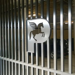 Custom, laser cut face mounted "P" and horse for an HOA parking garage