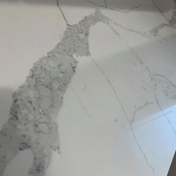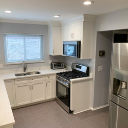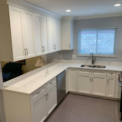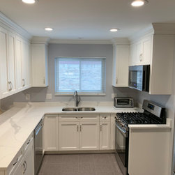 White Kitchen with White Quartz and Gray Floor