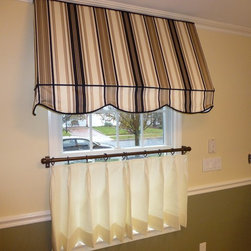 Custom awning and café curtain were created in this couple's kitchen. It adds a unique