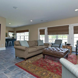 This simple linear home plan has all the space necessary for comfortable daily living, without costly wasted areas. From the covered expansive front porch you are welcomed into the foyer, which offers views directly into the core of the home ahead and flanks the dining room and office. The kitchen and sitting area are separated from the living room by a two way fireplace. Off the kitchen is a breakfast nook and screen porch for enjoying the outdoors. A master suite is privately tucked off to one site of the home and offers his and her vanities and walk in closet. Located on the upper level you find two additional bedrooms sharing a bath, as well as a small counter for homework or reading a book. The optional lower level finishes the home off with a family room, billiards, wet bar, and guest suite.