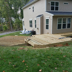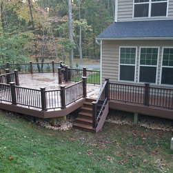For this project, we built Azek deck platform, using Mahogany decking color. Built a staircase, and installed a composite railing.
