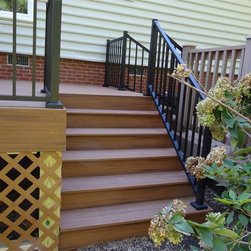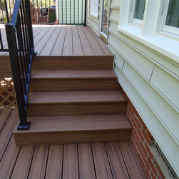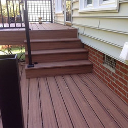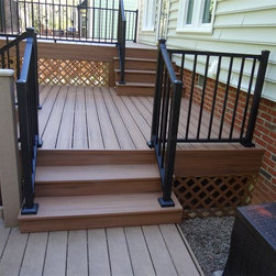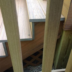 Trex Transcend synthetic deck installed with hidden fastener system, black superior aluminum rails, 250 square feet +/-, vinyl lattice surround to hide framing.
