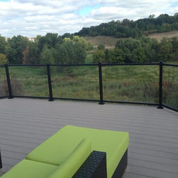 2 level Timbertech deck with Black WestburyRailing. Riser lights add to the ambiance and safety.
