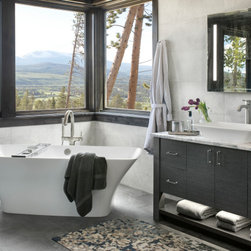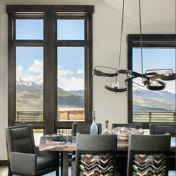 Rustic, white oak flooring exudes warmth throughout, while reclaimed barn wood accents walls. Custom steel I-beams with wire-brushed wood inlays standout amidst the neutral, clean lined finishes carrying weight and style from room to room. The kitchen features a leathered granite island, custom hot-rolled steel hood and unique hand-cast bronze Rocky Mountain Hardware on cabinets and doors.