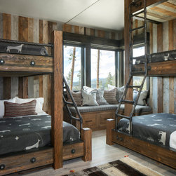 Each bedroom was designed as its own master suite and includes an on-suite bath equipped with steam shower and stereo system. The bunkroom boasts a custom, three-level bunk with ski cable railings and a two-level twin-over-queen, sleeping seven total.