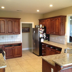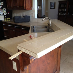 This kitchen is an example of what can be done, with a little care and patience, to preserve an existing full height tile backsplash. And replace the existing tile countertops (which the homeowner disliked) with granite. This was one of the most difficult tile tearouts we have encountered. ...
