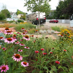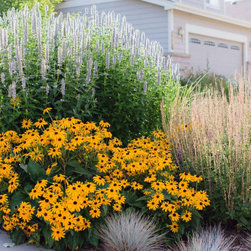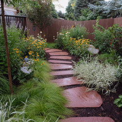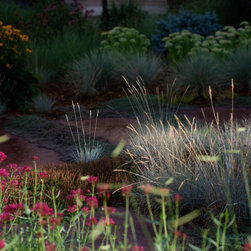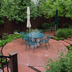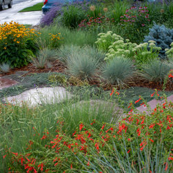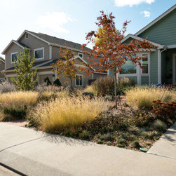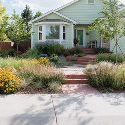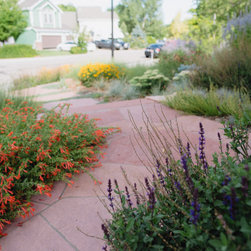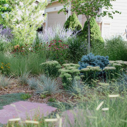 When our client decided it was time for her Kentucky Bluegrass lawn to go, we designed and created a garden that would bring life and beauty to her home and neighborhood. Our design used local red sandstone boulders to retain the grade and a naturalistic stone paths with stone slab steps for access through the garden to the door. Our client’s vision for her yard was to create a garden which reflected the Colorado Aesthetic in form and character while keeping things low-maintenance. She also wanted to make a welcoming space for pollinators and birds. Now all who come to her home feel welcome as they experience the beauty of her garden.