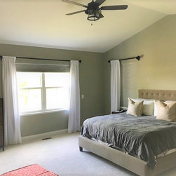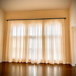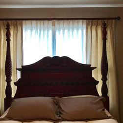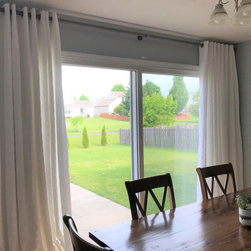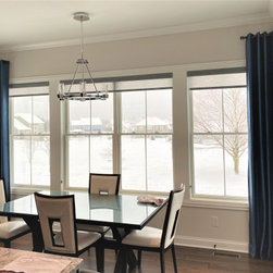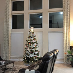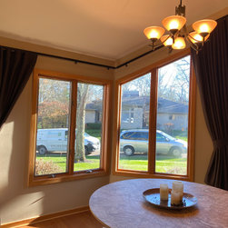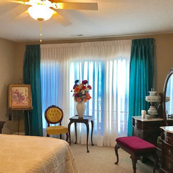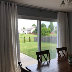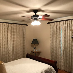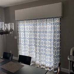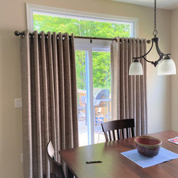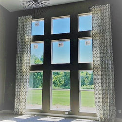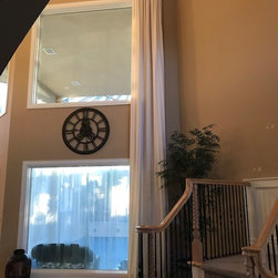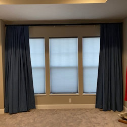 What a beautiful additional to this lovely home! They chose to use katherine indigo fabric with an iron essence rod in bronze color. The client is very happy with the end result as these fabrics complete the space.