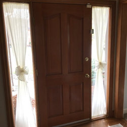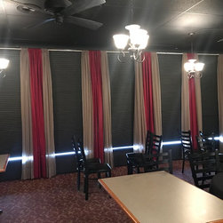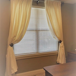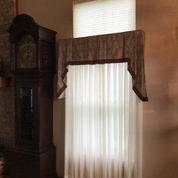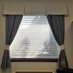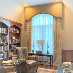This office space was completed with a window shading for privacy, accented with valance and side panels. The fabrics were tied together by using the same fabric for the tie backs.