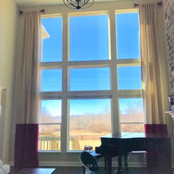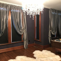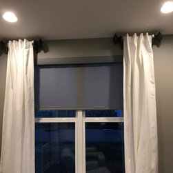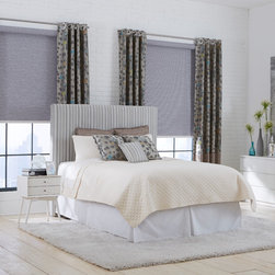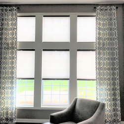 elegant design draperies with grommet tops and coordinating roller fabric shades