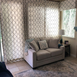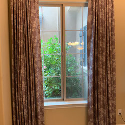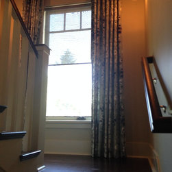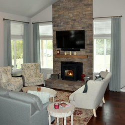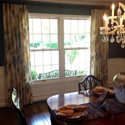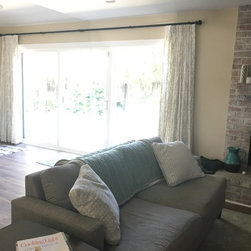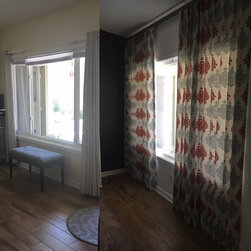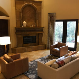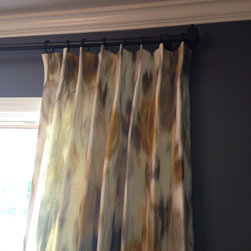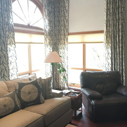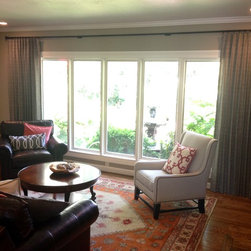This living room was formerly overdone with heavy Tuscan Drapery. We modernized the look with pleated side panel drapery in a lovely print that added softness and life to the room.