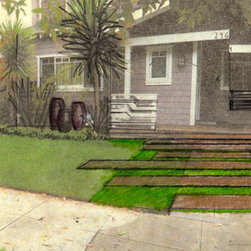 This is a drawing to illustrate a hardscape idea for a front yard entrance.