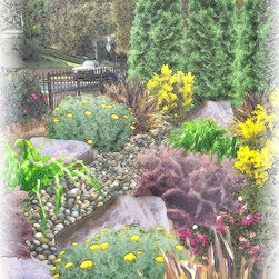 This is a drawing I did to illustrate an idea for a dry streambed to replace a front lawn.