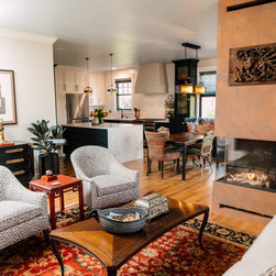 A simple home becomes fabulous! New black windows, flooring, trim, paint, a 3 sided fireplace, and a whole new kitchen and dining room. A dream come true...