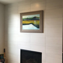 The finished fireplace makes the room appear larger, fresher and more sophisticated. The beautiful art stands out on a clean canvas of tile.