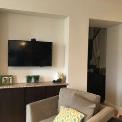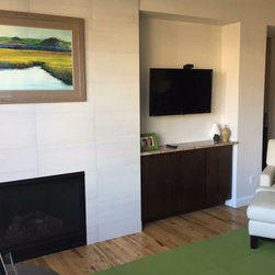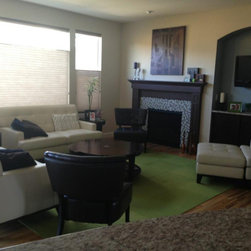 This is a picture of the living room we worked on. The homeowner has impecable taste and a modern clean aesthetic. We were able to change the fireplace to a cleaner more sophisticated look, change the angles of the room by making the alcove square and getting beautiful, new custom furniture and a...