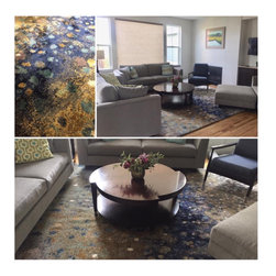 Custom furniture makes the room look put together with comfortable pieces that allow for entertaining in style. The room seems fresher and lighter with the new fire place with is more sophisticated and modern. the beautiful rug grounds the whole space together with clients' favorite colors. The...