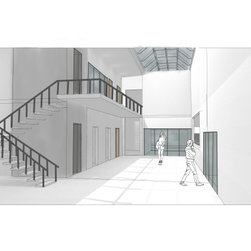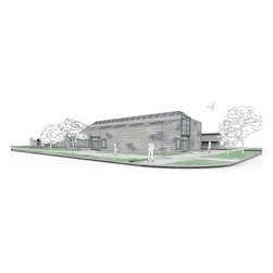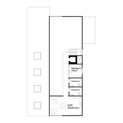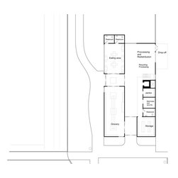 This bodega is a shopping center, recycling and compost collection center, and an employee-centered business. The programmatic diagrams emphasize a separation of public spaces (where customers are allowed to go) and private (employee-only) spaces, with the employee circulation as the connective tissue. The wax concept model shows the concept of employee circulation, or flow, being the primary force in the design. The employee spaces in the building are larger than the public spaces and even have a mezzanine level that is not accessible to the public. The primary employee circulation serves as a central spine for the building. The cash registers are located at a window between the public space and employee space.