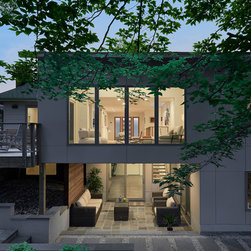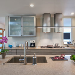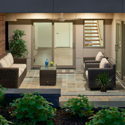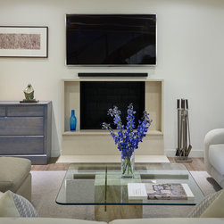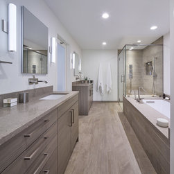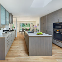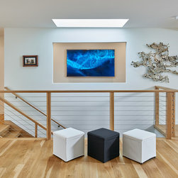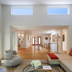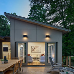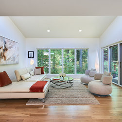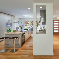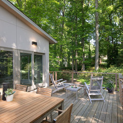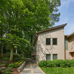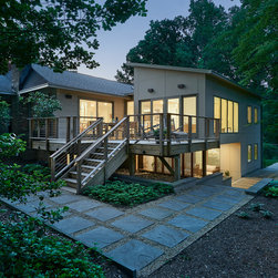 With their children grown and out of the house, this couple was ready to re-imagine their 1960s ranch-style home in suburban DC as a place to enjoy their golden years. The original layout was choppy, with lots of small rooms and a staircase that monopolized the entry. The clients wanted more open space for entertaining, with a sightline straight to the backyard. Extending the living room and adjacent bedroom over the existing patio helped do just that.