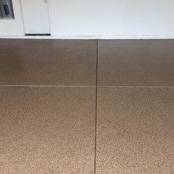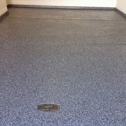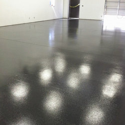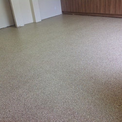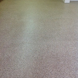 Epoxy/Polyaspartic full broadcast chip flooring . Uv resitant , can withstand numerous chemicals, non-slip, high gloss. Color chip blend can be customize to a one of a kind blend or solid color.