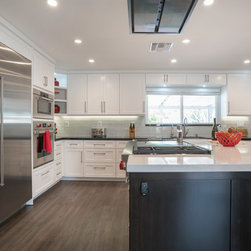 Our Contractors did a great job building the kitchen exactly to our spec. We also took into consideration our clients height and the fact that he has two beautiful dogs which live in the home with him. We decided to redo the entire laundry room to accommodate. We installed all new built in cabinets which also raised the washer and dryer machines to make doing the laundry even easier. Bending over to do your laundry should be a thing of the past!