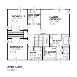 The large foyer open to the staircase is welcoming for guests. The home office complete with built-in and window seat is set apart from the rest of the home. Kitchen, Dining, and living rooms are centered on the fireplace near the rear of the home. Spacious mudroom with lockers and bench are great for storage, with laundry and bath filling the back entry. On the second story the kids study is located between the two additional bedrooms. A master suite with large closet and separated master bath provides privacy and comfort.