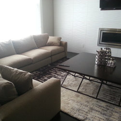 Savino Sectional, Newhart Cocktail, Simon Recliner, Mirage End and Surya Rug