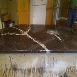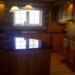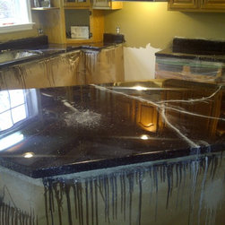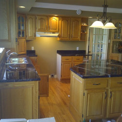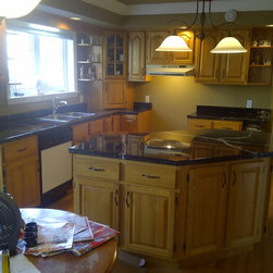 Re surfaced up to and around existing appliance garage saving the customer the costly process of removing custom built cabinets to upgrade the look of their kitchen