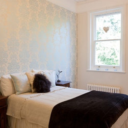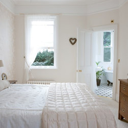 Classic master bedroom with sash window and high ceilings