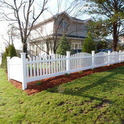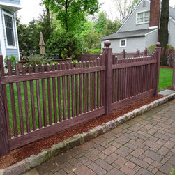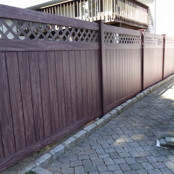 Fencing can make good neighbors when you pick the right style! Our Wood Tone pvc. gives you the look of rich wood with the maintenance freedom and durability of pvc. Powder coated aluminum has the old world look of wrought iron and the modern elegance of clean open lines. Eastern White Cedar will age to a beautiful silver gray.
