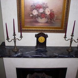 Mantel close-up of plaster finish.