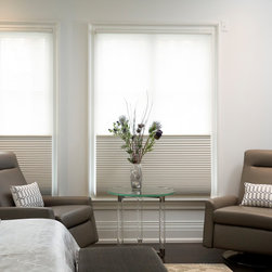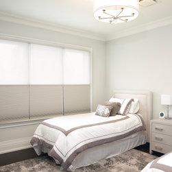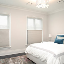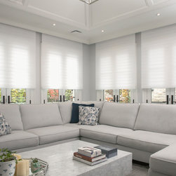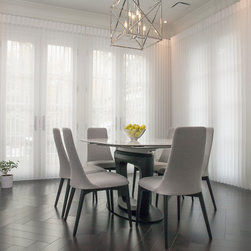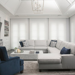 Our client wanted fully automated premium window coverings for all of the windows in their home. They opted for: Luminette Privacy Sheers, Silhouette Sheer Shadings, and Duette Duolite Honeycombs.