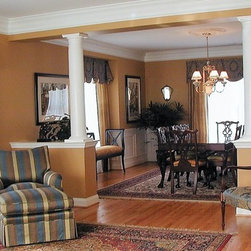 Formal and Traditional Open Floorplan Home featuring exquisite area rugs that create the color story of the home.